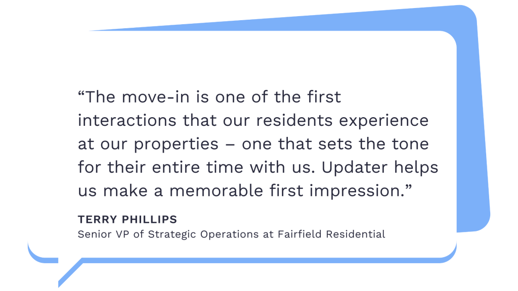 Seeking to improve the move-in experience for both their residents and onsite teams, Fairfield launched Updater Pro for Multifamily to simplify and digitize the move-in process.