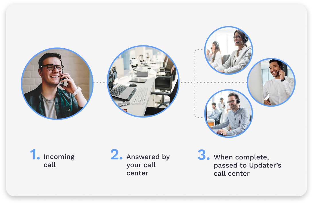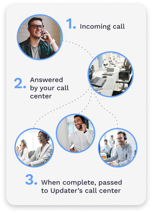 Minimal training, no integrations. Your agents simply transfer the call and we take it from there.