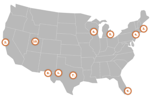 “In terms of cities gaining new residents, we’re watching Denver and Austin. Those cities have been gaining residents before the pandemic, but the rate of growth massively accelerated during the pandemic,” Greenberg stated. Both Denver and Austin rank as a top 15 city for both the overall number of inbound moves and the percentage of growth relative to each population.