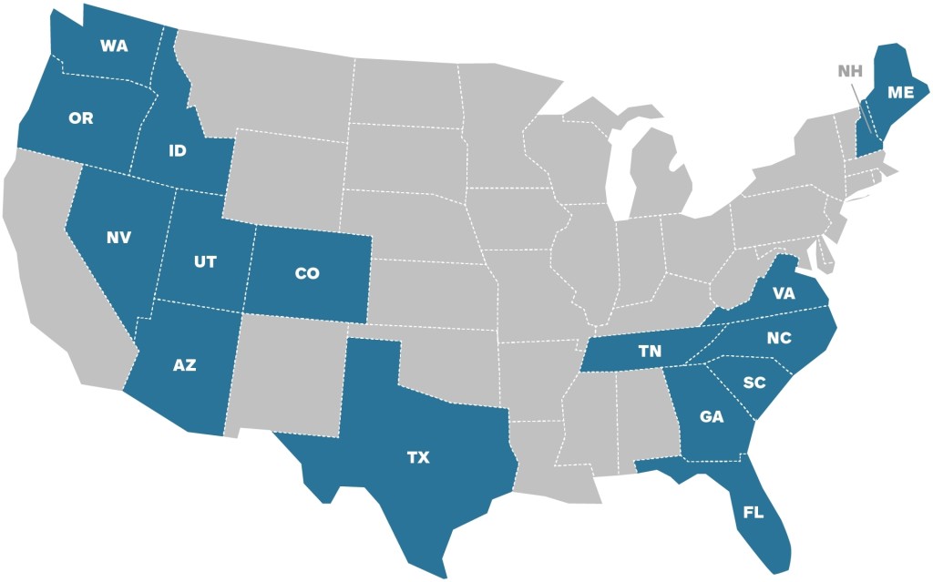 Q1 saw a continuation of the migration trends Updater noted in 2020, where the vast majority of movers left expensive, densely populated states in favor of more expansive, warm, and affordable southern and western states. In fact, only 16 states in the US had a greater percentage of inbound moves than outbound moves, including nine warm-weather states, four of which – Florida, Nevada, Tennessee, and Texas – don’t charge income tax. Of the 16 states, six are in the western half of the country. Maine and New Hampshire are the only states from the Northeast to see more inbound than outbound moves.