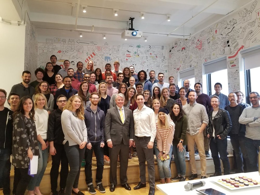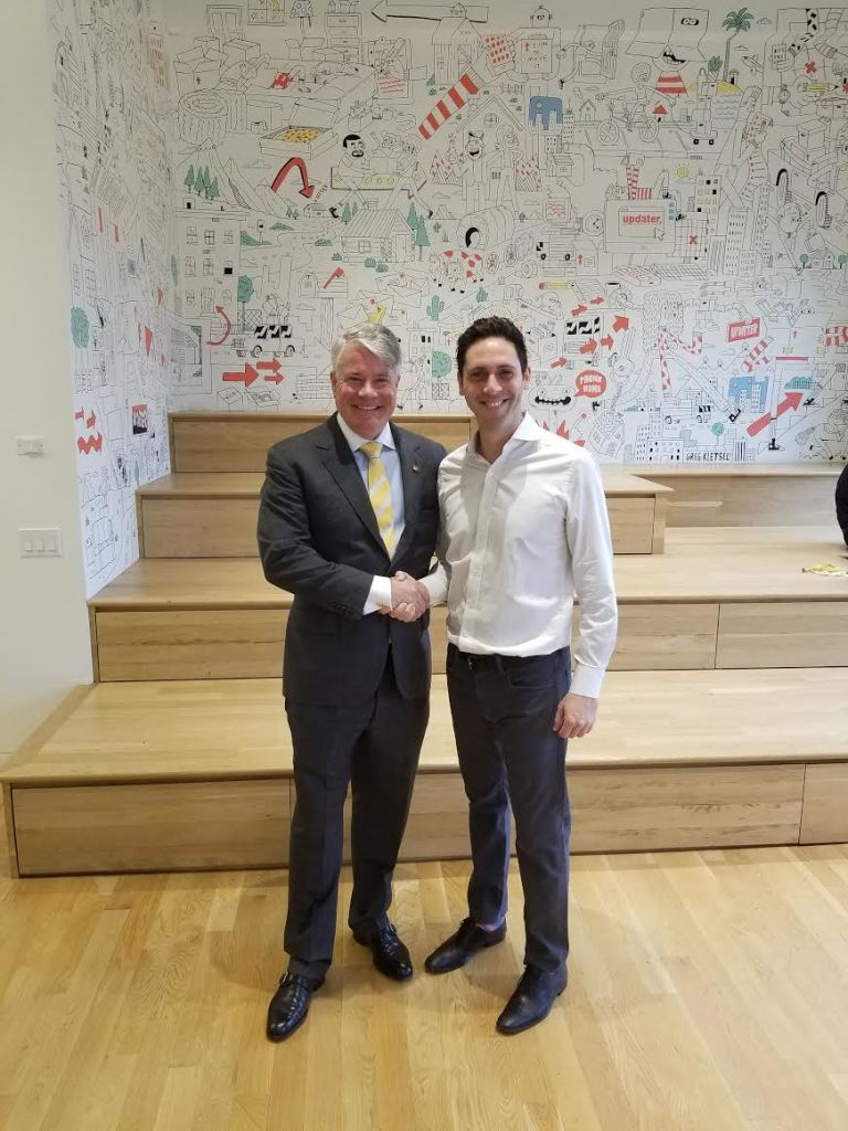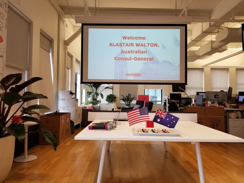 Alastair Walton, Australia’s Consul-General, stopped by Updater to chat with us about his experiences with innovation in business, the technology sector in Australia, our unique Australian IPO, and his thoughts on traveling (and moving) throughout the world. Spoiler: It doesn’t matter how many times you move he says, it never gets easier. He sees Updater not as a disruptor, but as a company that is providing a much-needed service to solve a very painful process. We couldn’t agree more! A big thank you to Mr. Walton for taking time out of his busy schedule to meet with us – we thanked him with cupcakes!