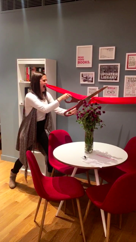 Our outstanding People Experience Coordinator, Ricki Halpern, put together an Updater Library on the sixth floor of our NYC headquarters. The team was encouraged to bring in old books to help jumpstart the eclectic library. We celebrated the launch of our library with a grand opening party complete with light bites, drinks, and a ribbon-cutting ceremony. From horror and romance to cooking and coding, the team can now check in and check out whatever books they please. We’re looking forward to seeing our collection grow. Thank you, Ricki, for organizing our very own bookworm haven!