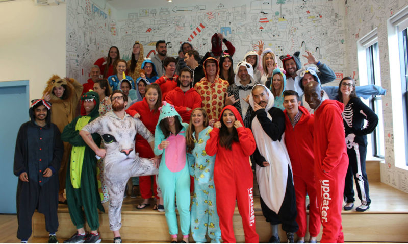 Yes, we’re talking those snuggly one-piece articles of clothing that children – we mean adults – wear. It’s kind of a thing at Updater. So one day a year, if you’ve got one, you flaunt it! Whether a unicorn, cookie monster, or a classic Updater Onesie, they are all welcome! It’s kind of one of those things you have to see to believe. Proof of insanity below…