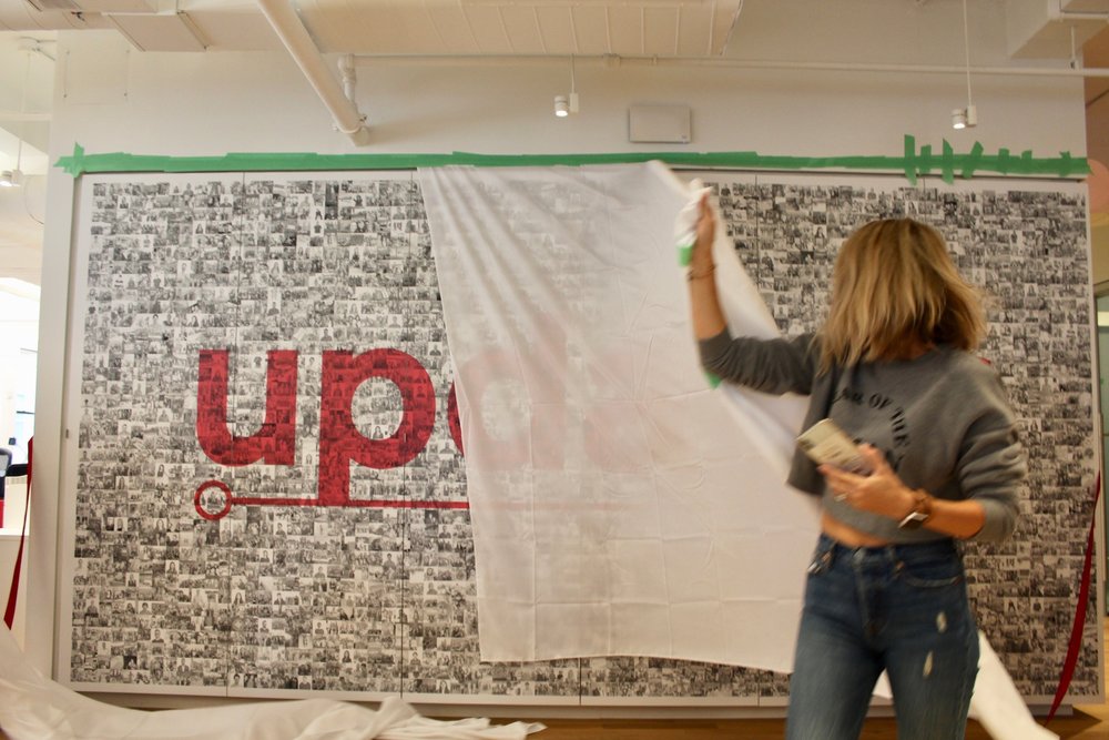Once the ribbon was cut, an even bigger surprise was in store. Our people experience super stars, (the women behind the magic) Ashley & Ricki, pulled back the sheets to reveal an outstanding mural of everyone at Updater throughout the years. The team excitedly rushed over to spot photos of their most cherished Updater memories.