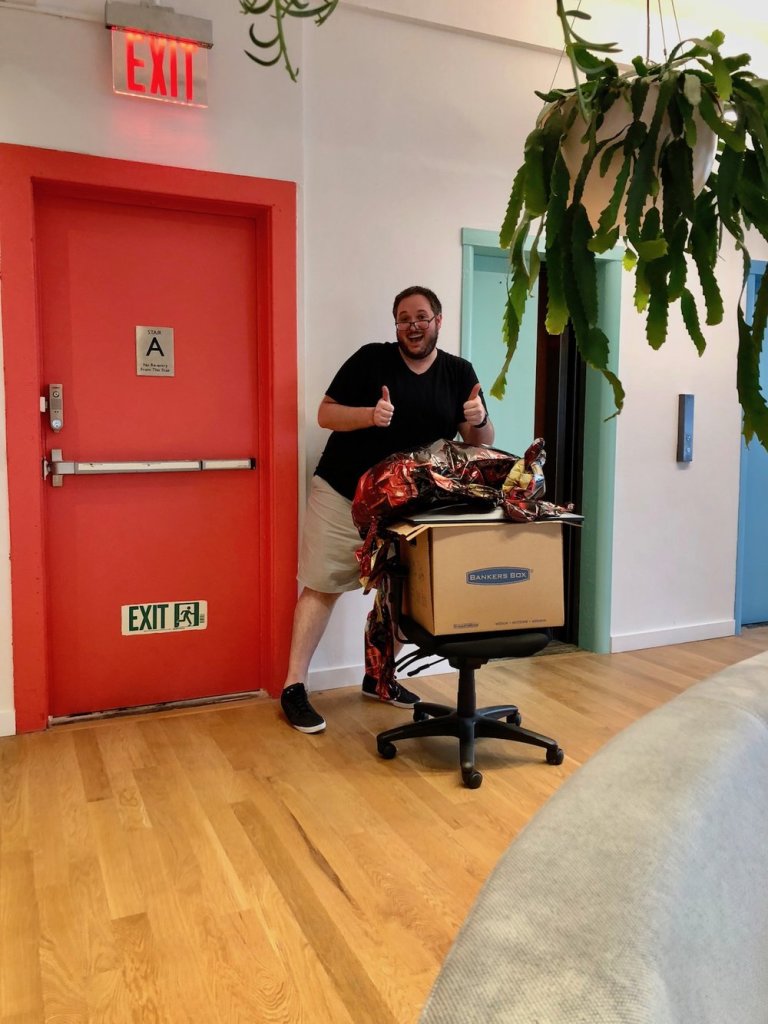 We paused from all the chatty excitement for just a moment to hold a ribbon-cutting ceremony. Our Founder and CEO, David, chuckled saying, “I didn’t realize they actually made scissors this big.” Before the big snip, he reminded us of Updater’s humble beginnings — working with engineers out of his studio apartment in the West Village. The opening of this floor was a testament to how far the entire company has come, and how it wouldn’t be possible without our amazing team.