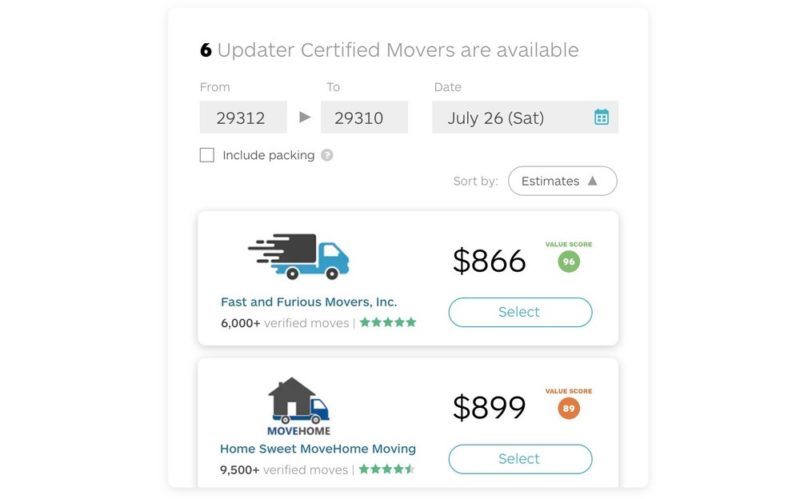 Updater saves your clients time and headaches during their move. For example, one of the most stressful moving tasks is the search for a reliable moving company. Fortunately, Updater has created the ultimate tool to help users find a moving company that fits their needs. All moving companies available through the platform are Updater Certified Moving Companies and are required to maintain the highest level of customer satisfaction. In addition, they are verified by national and local moving associations.